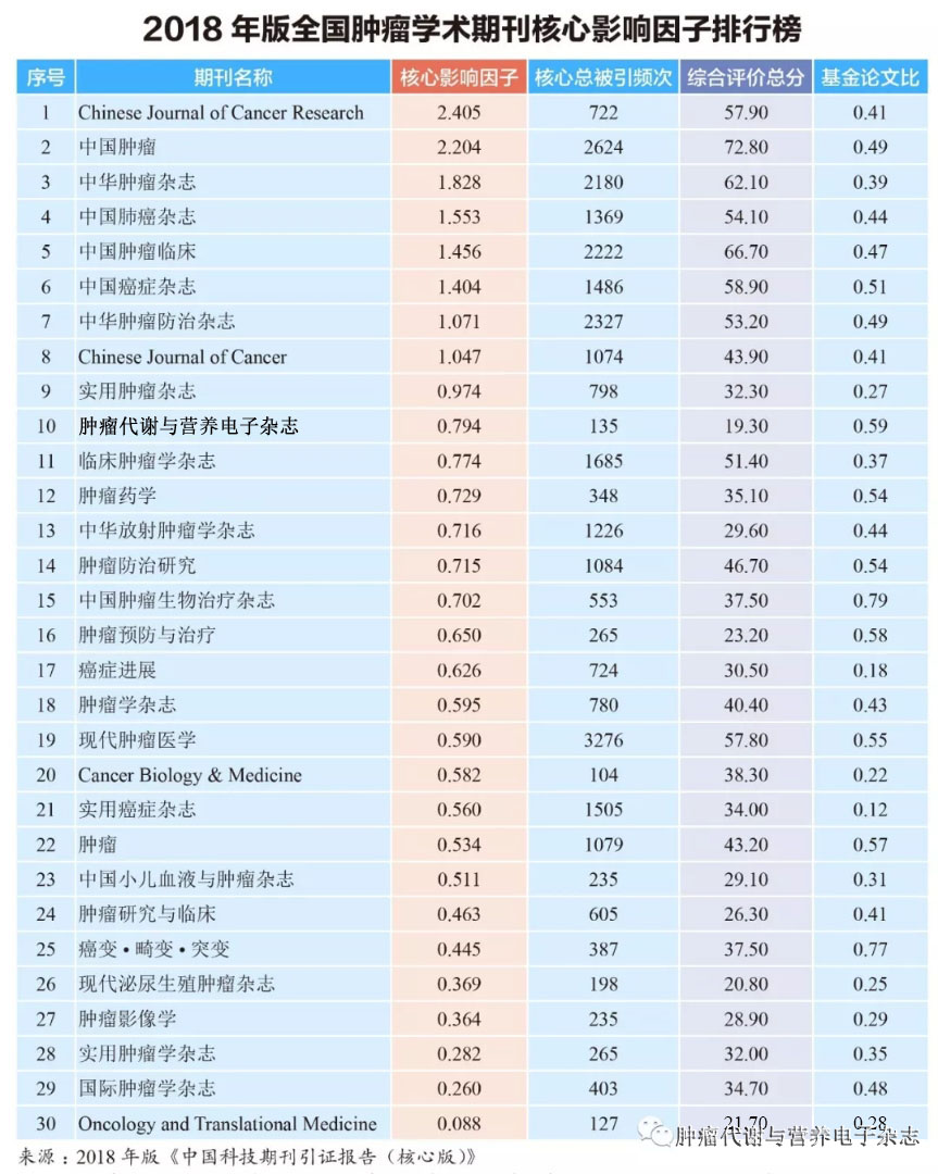 热烈庆祝《肿瘤代谢与营养电子杂志》成为十佳肿瘤期刊